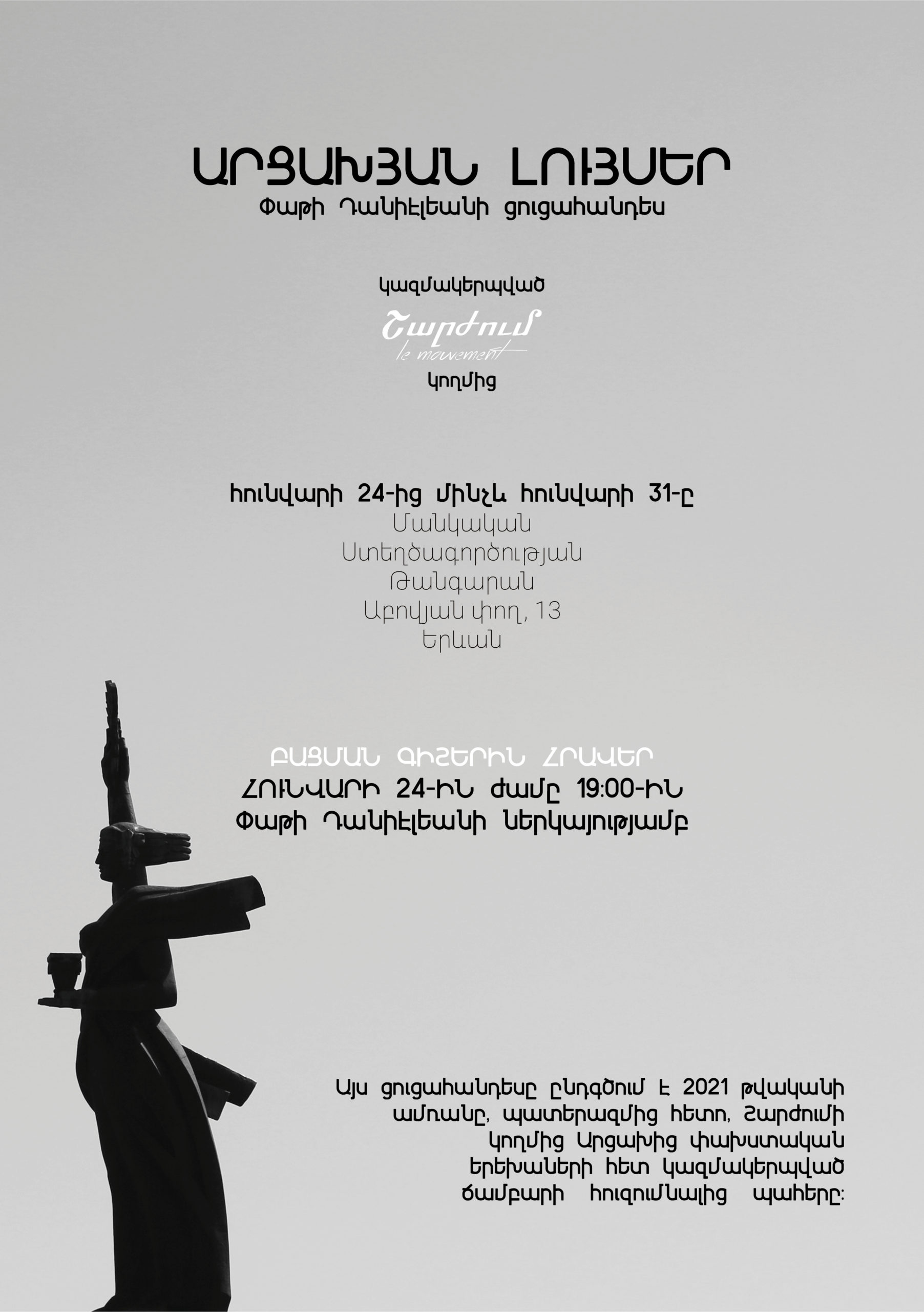 «Արցախյան լույսերը» այս փոքրիկ երեխաների հետ այդ եզակի պահերը կիսելու բացառիկ հավաքածու է, երեխաներ, որ չնայած իրենց երիտասարդ տարիքին, արդեն այնքան բան են ապրել, որ կարող են մեզ շատ բան սովորեցնել: Այս պատկերների միջոցով ես ուզում եմ աշխարհին ցույց տալ նրանց վերապրածը և հայացքի խորությունը այս հակամարտութեան մասին, որը չափազանց մոտ է իրենց: