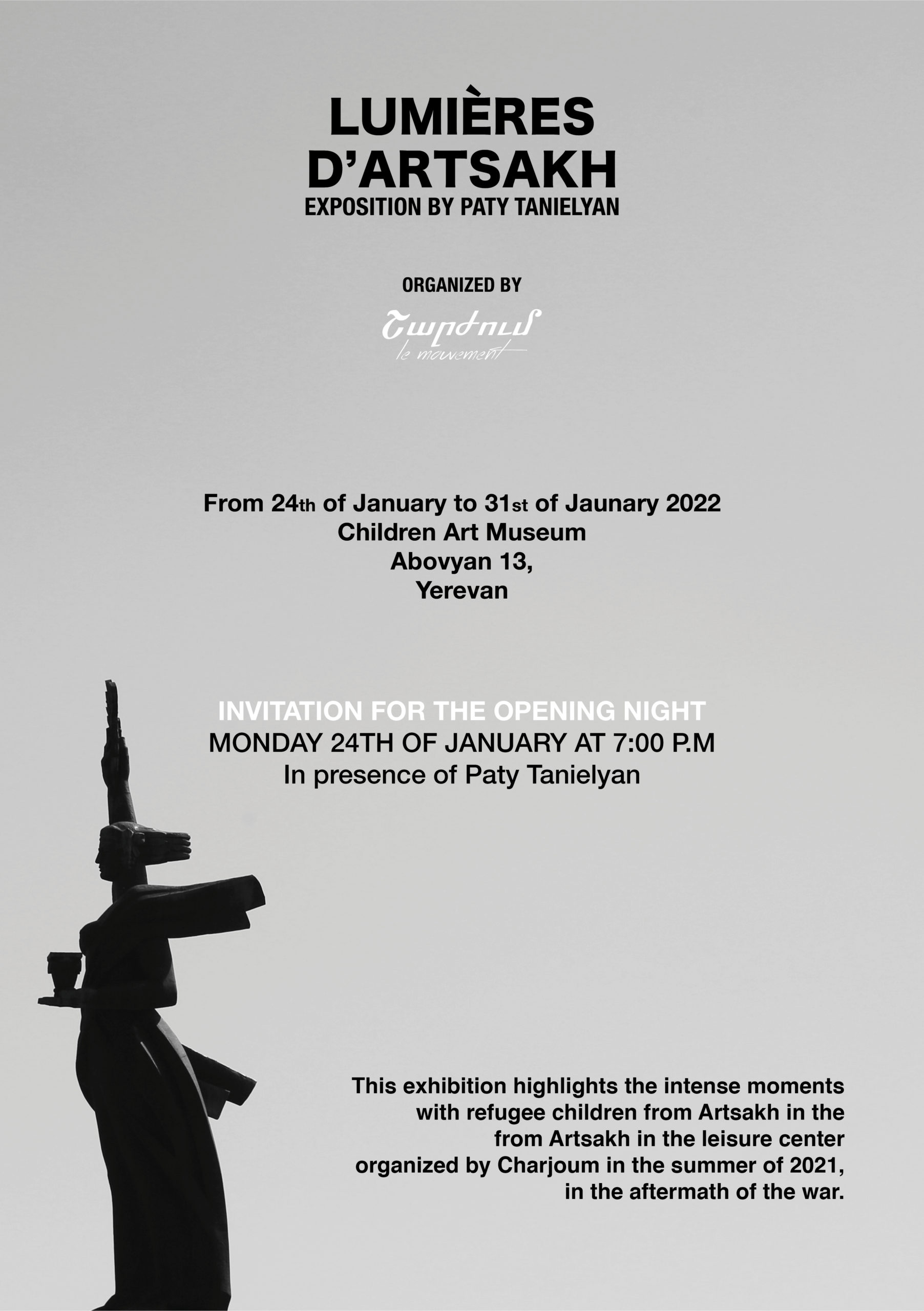 Lumières d’Artsakh est un recueil de moments uniques partagés avec ces jeunes enfants qui malgré leur courte vie ont déjà tant vécu et ont beaucoup à nous apprendre. Au fil de ces images, je souhaite partager au monde la sensibilité et le poids de leurs regards sur un conflit qui ne les a touchés que de trop près.
